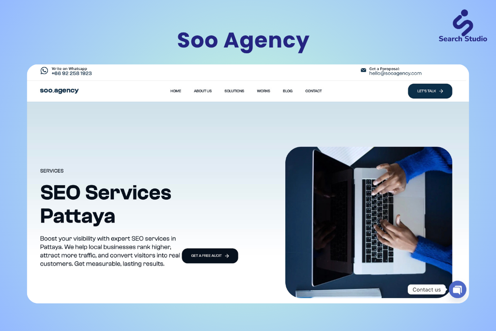 Soo Agency is an SEO agency based in Pattaya, Thailand, dedicated to helping local businesses rank higher on Google and attract more customers. With a customized approach that blends local insights and proven best practices, they focus on sustainable, measurable growth. Services include keyword research, on-page optimization, local SEO, technical audits, and transparent monthly reporting.