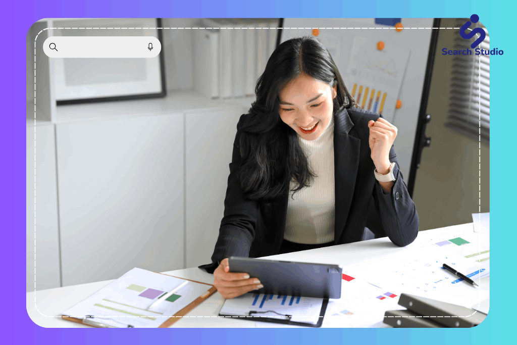 Search Studio ให้บริการรับทำ SEO เพื่อช่วยเพิ่มยอดผู้เข้าชมเว็บไซต์ โดยเน้นคุณภาพและประสิทธิพลในระยะยาวเป็นที่ตั้ง ด้วยกลยุทธ์ที่ออกแบบให้เหมาะกับธุรกิจของคุณ ตั้งแต่การ research เพื่อหากลุ่มของ keywords ที่จำเพาะกับกลุ่มเป้าหมาย ให้คำปรึกษาในการตกแต่งเว็บไซต์และการเผยแพร่บทความที่จะช่วยทั้งในเรื่องของอันดับใน Google และช่วยสร้างภาพลักษณ์ที่ดีให้แบรนด์ด้วยเครื่องมือขั้นสูง โดยมีการติดตามผลลัพธ์การทำงานและวัดผลอย่างต่อเนื่อง สอบถามข้อมูลเพิ่มเติม